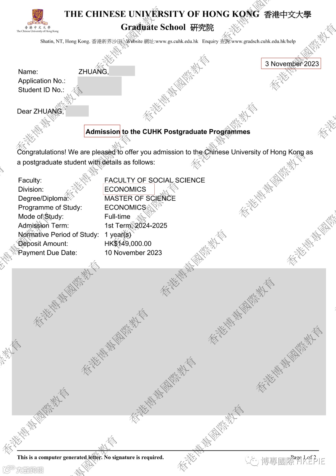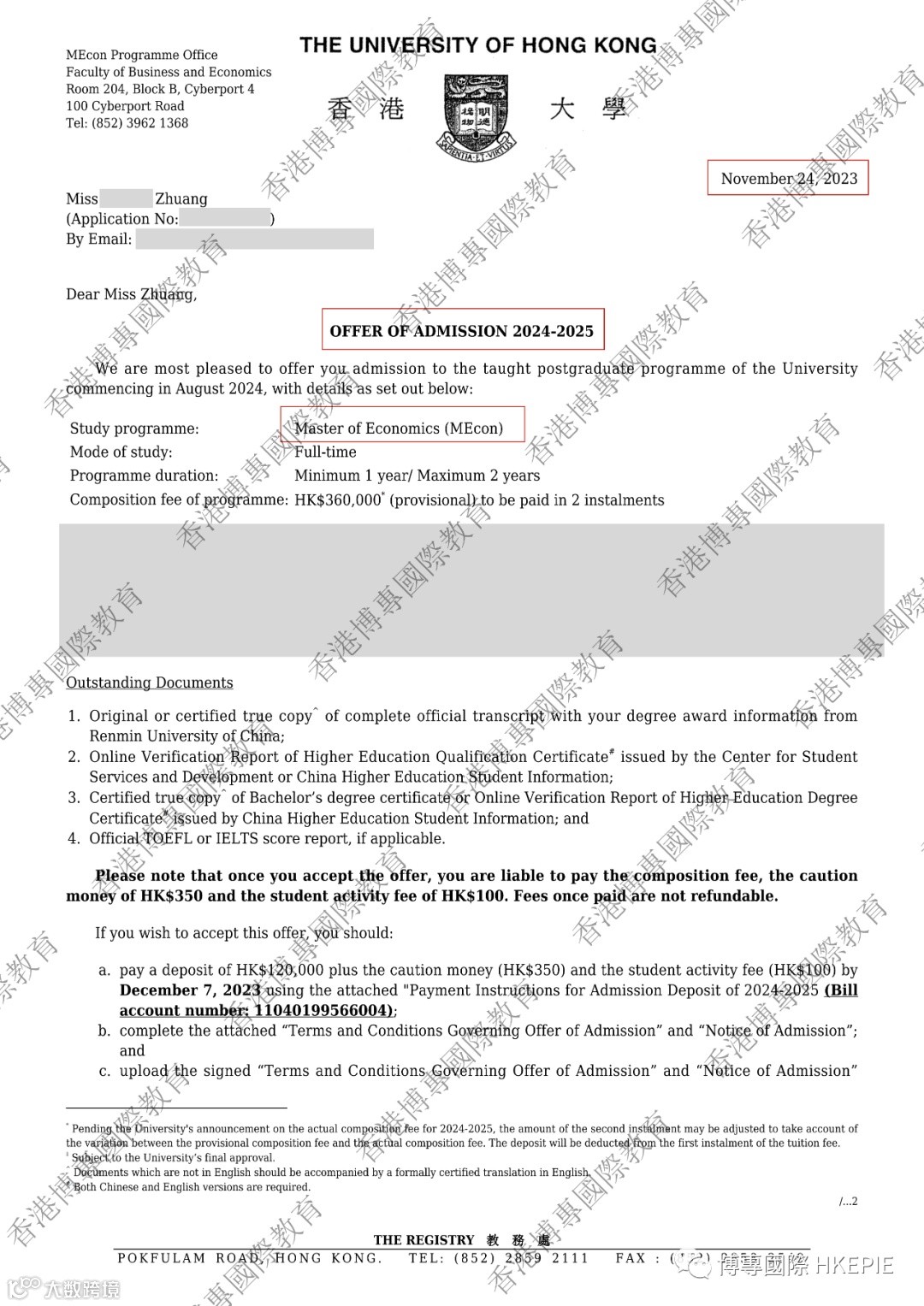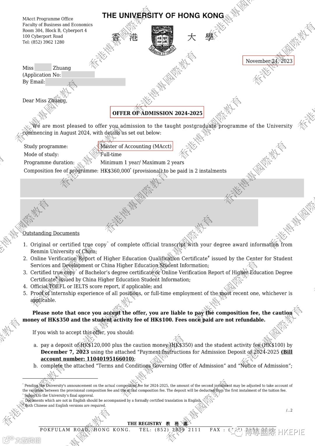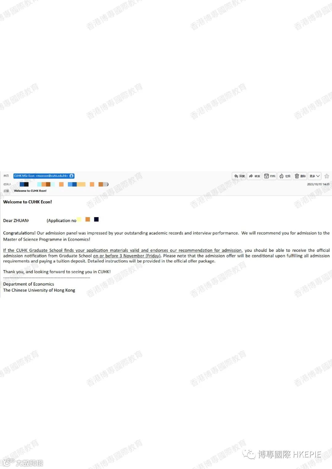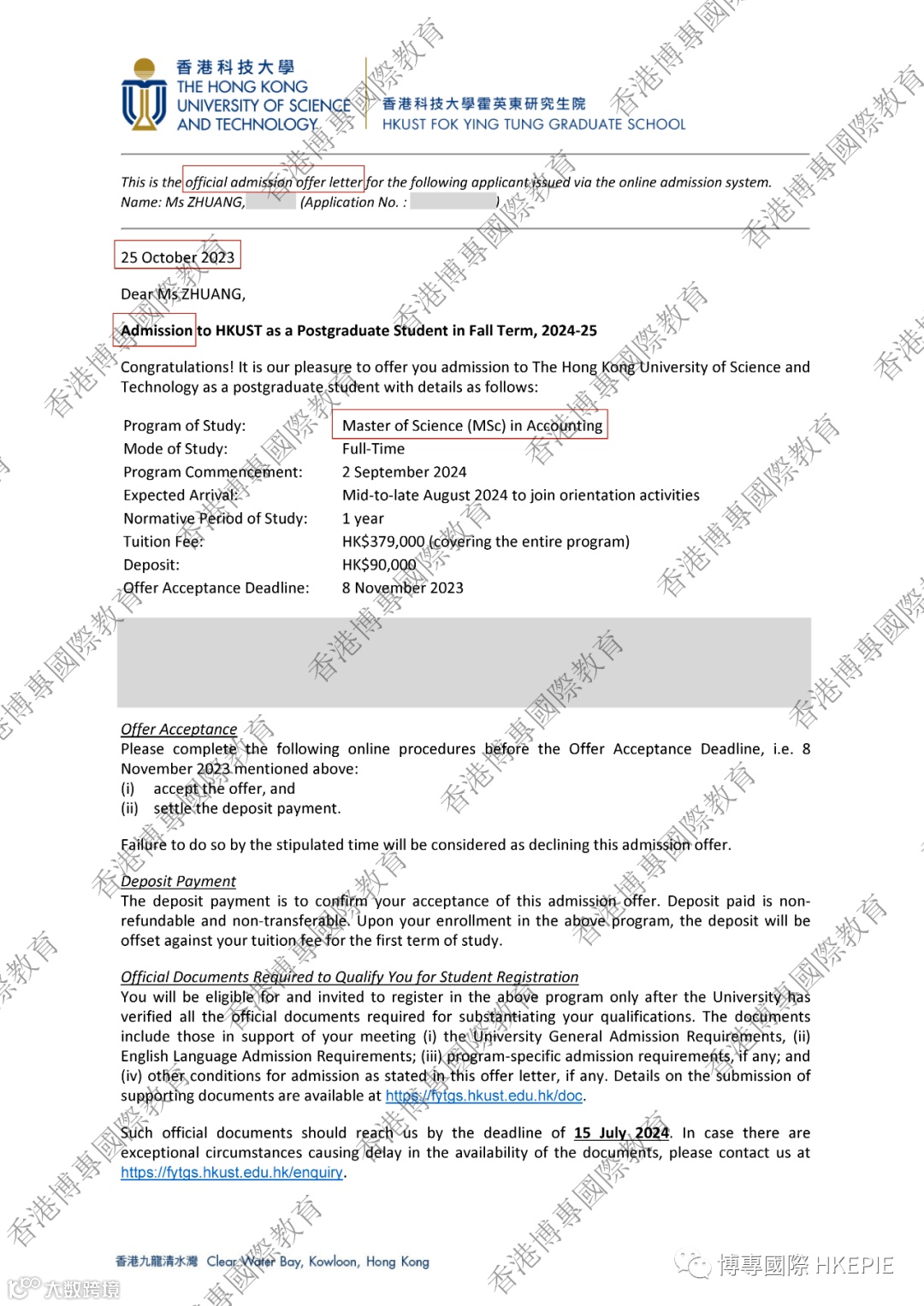 最后,我顺利通过了UST与CUHK的面试,成功斩获UST会计学以及CUHK经济学的offer。虽然这两份offer的含金量也很高,但我最心仪的offer始终是香港大学的会计学。
