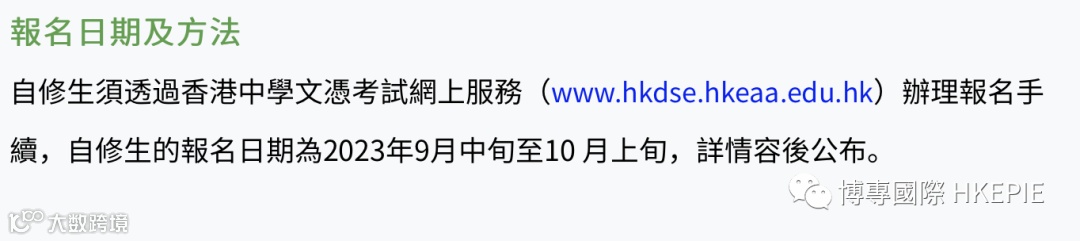 根据考评局于官网上慨指引,只要你合符以下其中一项条件,就可以自修生身份报名 2024 年香港高考 DSE: