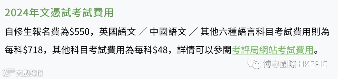 自修生报名费为$550,英国语文 ∕ 中国语文 ∕ 其他六种语言科目考试费用则为每科$718,其他科目考试费用为每科$48 。