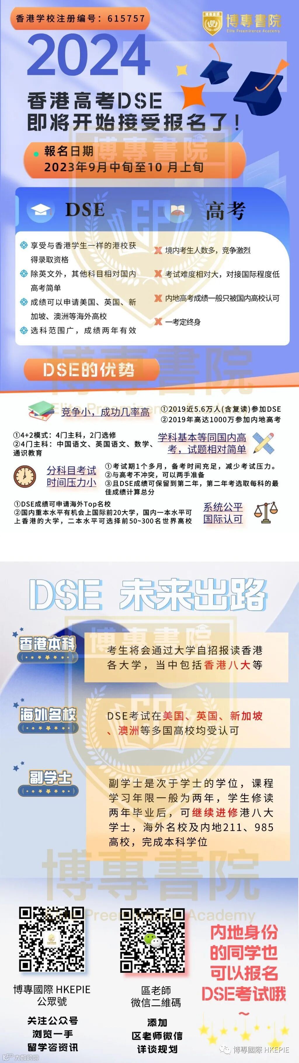 如果是内地读书的学生,以自修生身份报考DSE。自修生则需通过香港中学文凭考试网上的报名系统提交申请。
