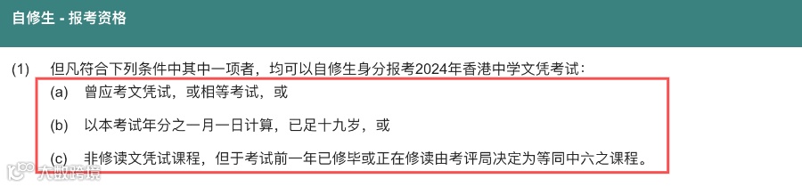 但凡符合下列条件中其中一项,都可以自修生身份参加DSE考试。