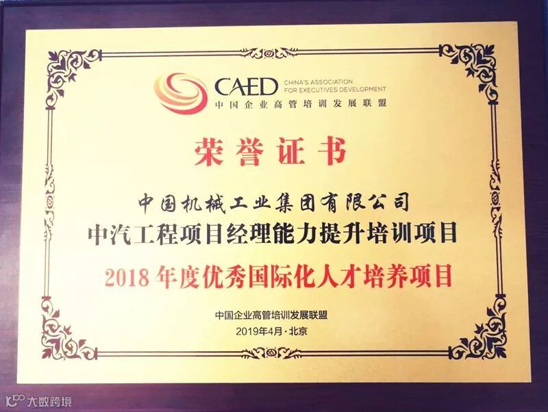 由中国企业高管培训发展联盟(以下简称“联盟”)组织评选的“2018年度中央企业人才培养荣誉评选系列奖项”在北京隆重揭晓,中汽工程以“中汽工程项目经理能力提升培训项目”荣膺“2018年度优秀国际化人才培训项目奖”。