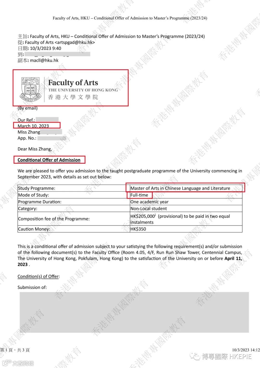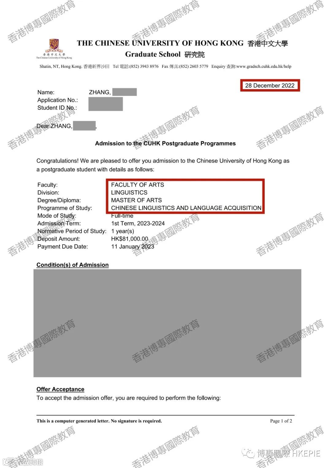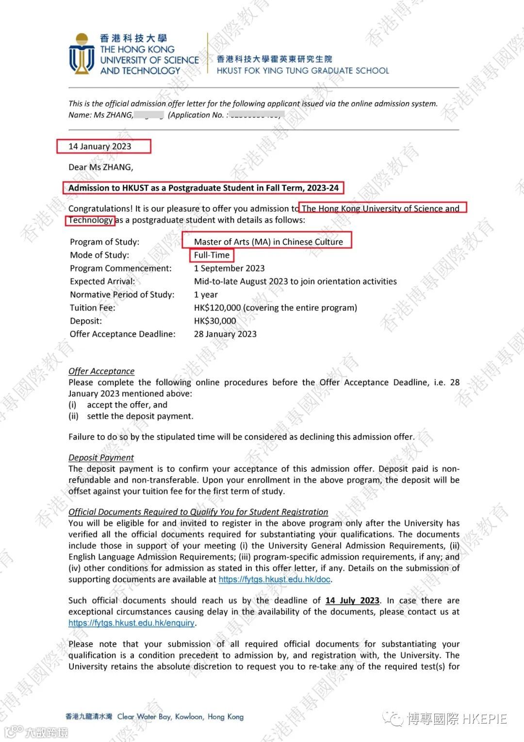 最终,我成功收到了香港大学中国语言文学文科硕士课程,香港中文大学汉语语言学及语言获得文学硕士课程和香港科技大学中国文化文学硕士录取通知。