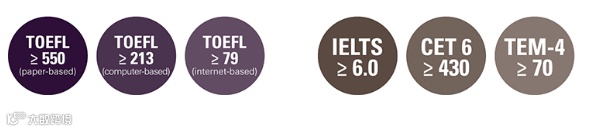 若申请人的大学本科学位并非以英语授课,需符合以下任何一项英语语言能力要求:托福≥ 79(网考),≥ 213(机考),≥ 550(笔考);雅思≥ 6.0;大学英语六级考试≥ 430 ;或英语专业四级考试≥ 70)
