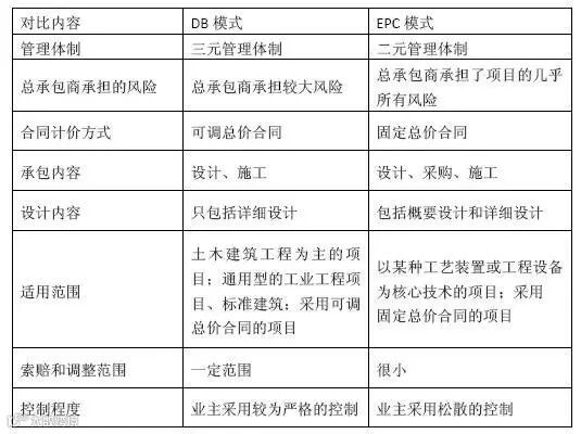 相对于施工合同而言,在工程总承包模式下,总承包商需要承担较大的风险。但是在DB和EPC两种不同的模式中,总承包商承担的风险存在较大的差异,EPC模式下总承包商承担的风险要大于DB模式下总承包商承担的风险。