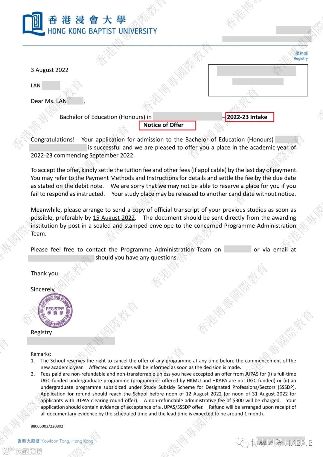 香港博专国际教育学生于2023-24年度共斩获370+本科生取录通知书
