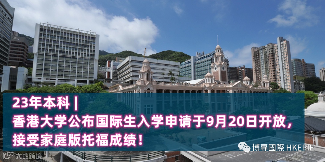 香港大学2023年度国际生本科入学网上申请系统将于9月20日开放!第一轮申请将于2022年11月16日截止,本年度23fall申请一大利好:可接受家庭版托福成绩,要求93分以上,以国际课程考试(IB,SAT/AP, GCE A-level, OSSD等国际课程)申请本科入学的小伙伴们,建议申请务必赶早!