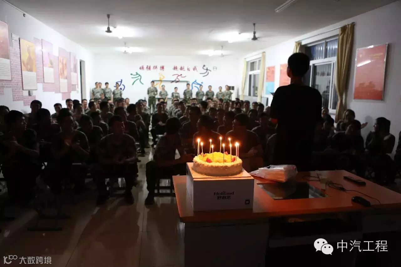 如果说白天的训练是身体力行,而晚上的活动则是在感化心灵。每一次晚上活动,都异彩纷呈,令人难忘。在这里,团委王赞书记以精彩的讲座送予每位新员工一张通往“天堂”的门票。王建国部长从天地人的角度讨论了为人处世之道,又由个人经历阐述了自己的时空观,人生观,生死观,新员工们受益匪浅。更难忘记的是团委用先抑后扬的方式为7、8月出生的新员工庆祝了生日,这份突如其来的惊喜使新员工们切实的感受到了中汽大家庭的温馨,犹如心灵深处的甘泉,感动之情溢于言表。此外,财务部王璐曼来为新员工讲入职后可能遇到的财务问题,以及处理方式进行了讲座。这些穿插在训练期间的活动,构筑的是物质之外的精神世界,是倾情分享的务实的生活与工作经验。活动点点滴滴,至今犹历历在目,如军营绿丛中的一点红心,如可穿磐石的柔水,使大家我们在刚毅的同时,不忘有一颗柔软的心。