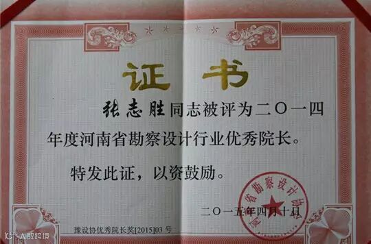 2015年4月10日,河南省勘察设计协会八届二次理事(扩大)会议在郑州召开, 会上对获得2014年度河南省工程勘察设计行业突出贡献奖和先进企业、优秀院长的获得单位和个人进行了表彰。