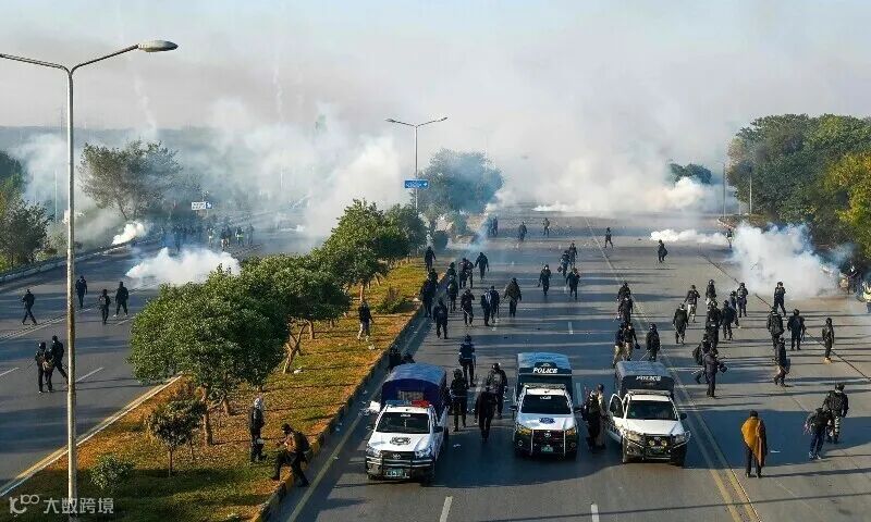 11月26日,在伊斯兰堡举行的要求释放前总理伊姆兰·汗的抗议活动中,警察发射催泪弹驱散伊姆兰的支持者。示威者与部署与警察发生冲突。有的示威者甚至从警察手中抢走了武器。