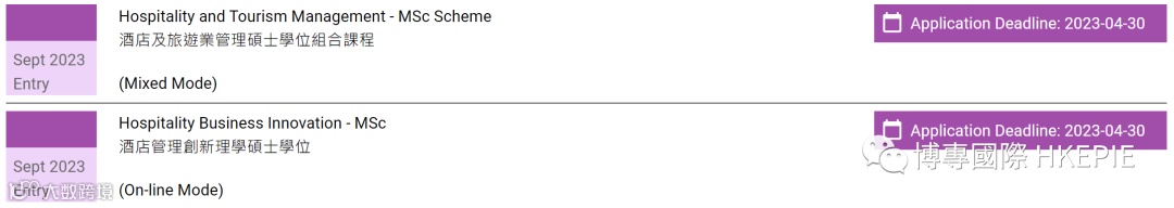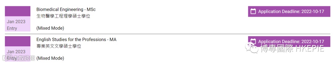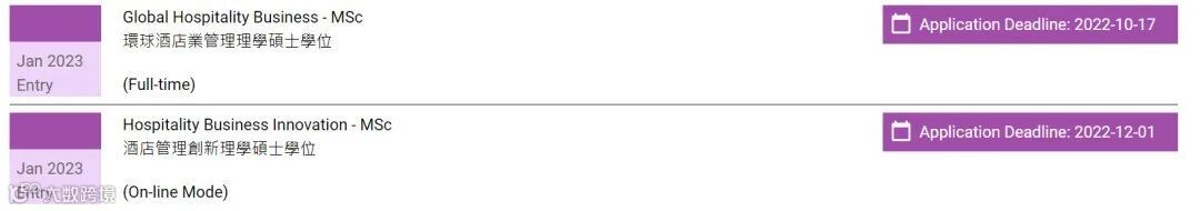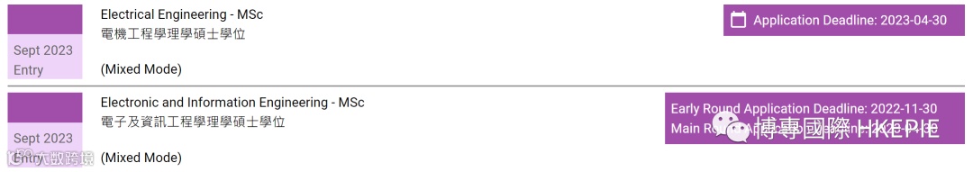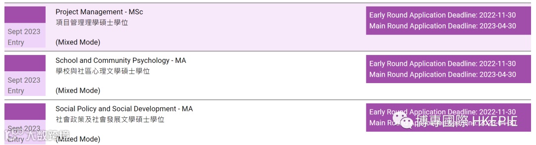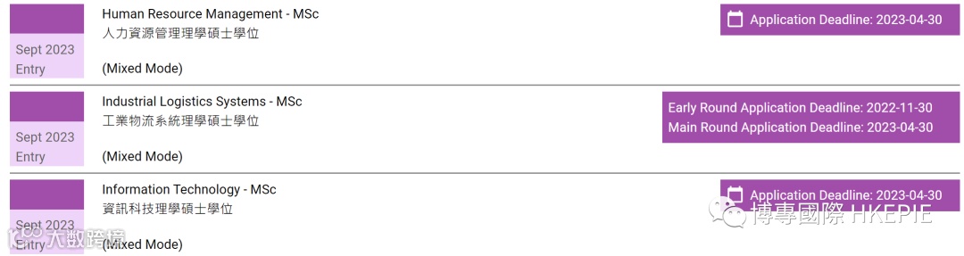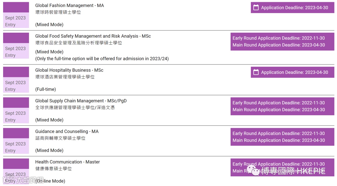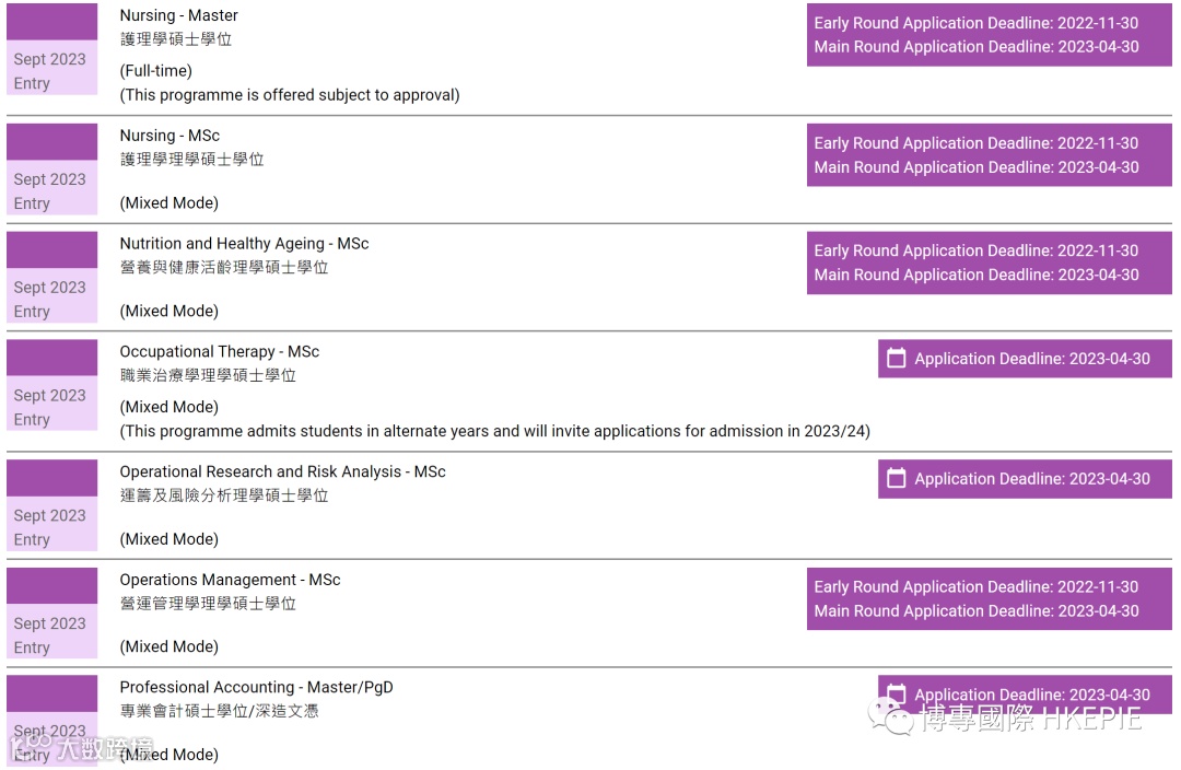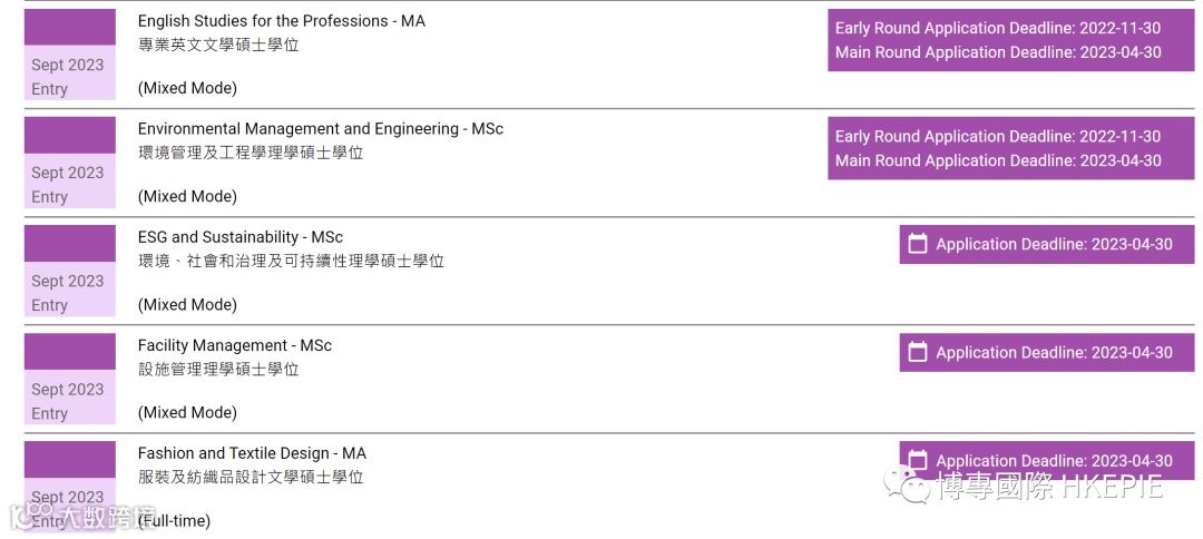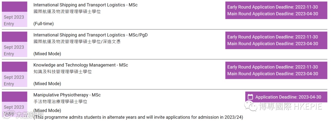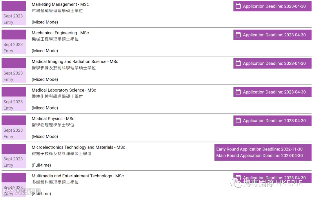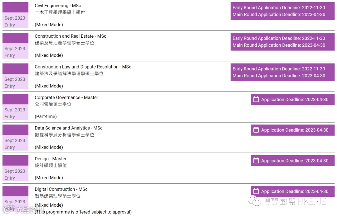 以下为香港理工大学23年秋季硕士入学申请专业汇总: