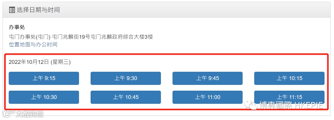 第六步:选择办理地点、日期和具体的时间。