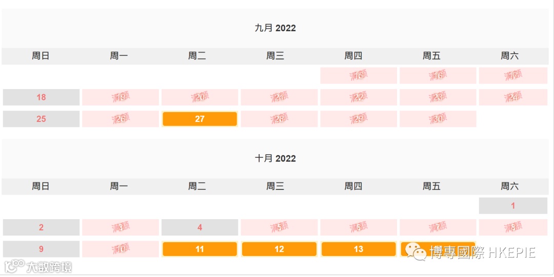 基本上可预约的时间