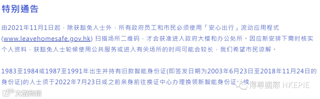 大家要注意,智能身份证换领中心不会处理首次申领成人或儿童身份证、因身份证遗失、毁灭、损坏或污损的补领申请、更改身份证登记资料或新来港人士的身份证申请。