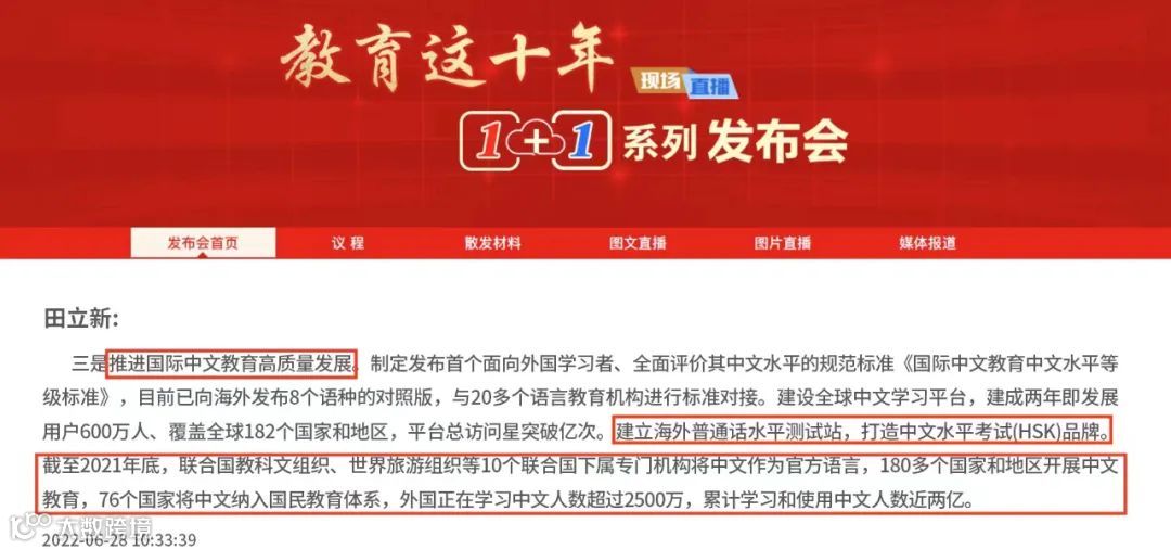 截止2021年底,全球共有180多个国家和地区开展中文教育,76个国家将汉语教学纳入国民教育体系,4000多所大学、30000多所中小学开设中文课程。
