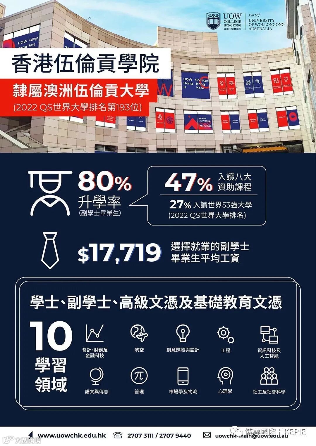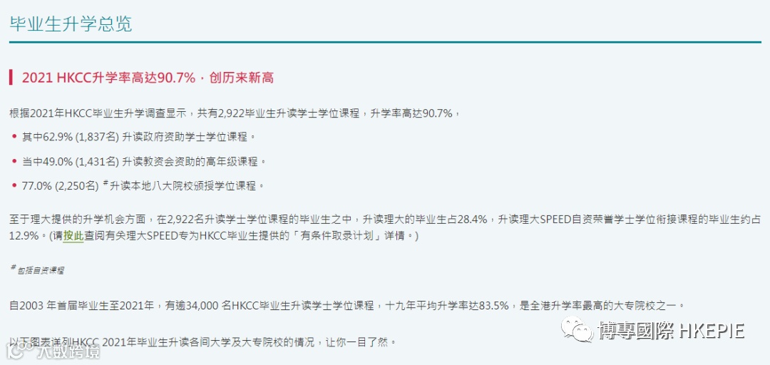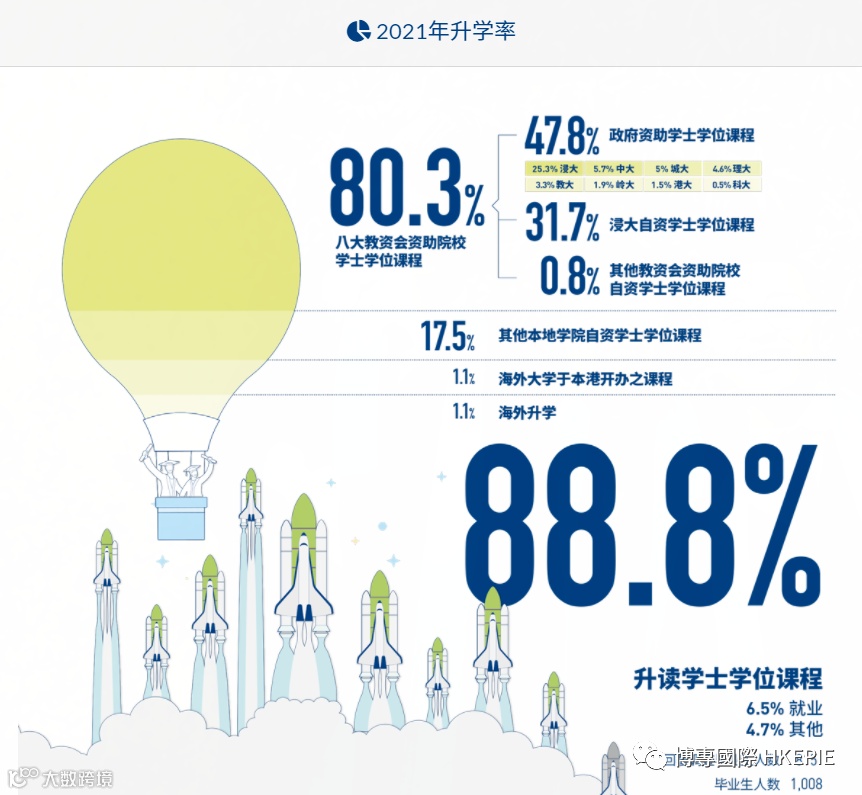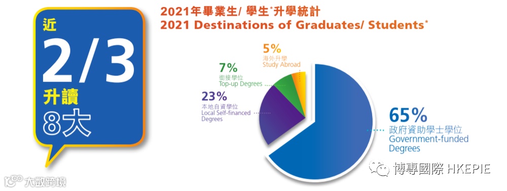 而当中有77%的毕业生能够升读香港八大的本科课程。