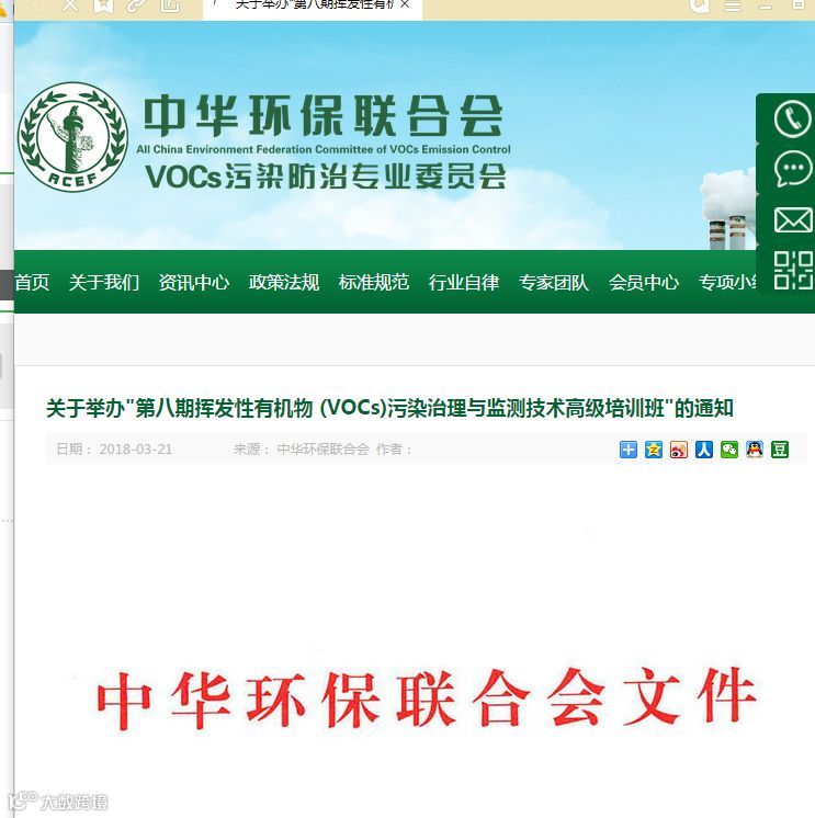 信息发布查阅:www.acef.com.cn(联合会官网)、www.acef-vocs.com.cn(VOCs专委会)、《VOCs前沿》微信公众平台;