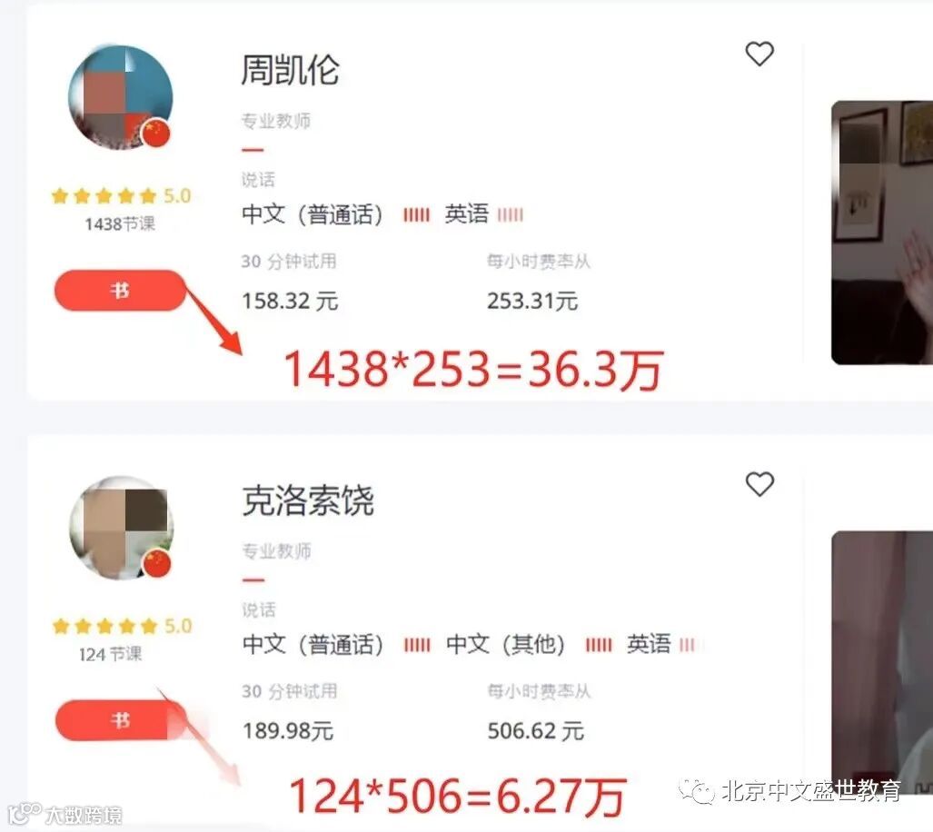 可以在线上通过视频教学:通常200-500人民币/课时(不同国家有差异)