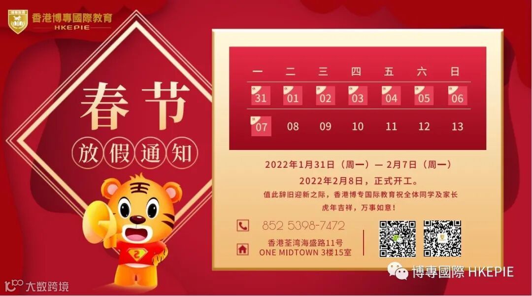 最后,香港博专国际教育祝大家虎年大吉,万事顺遂,岁岁平安。