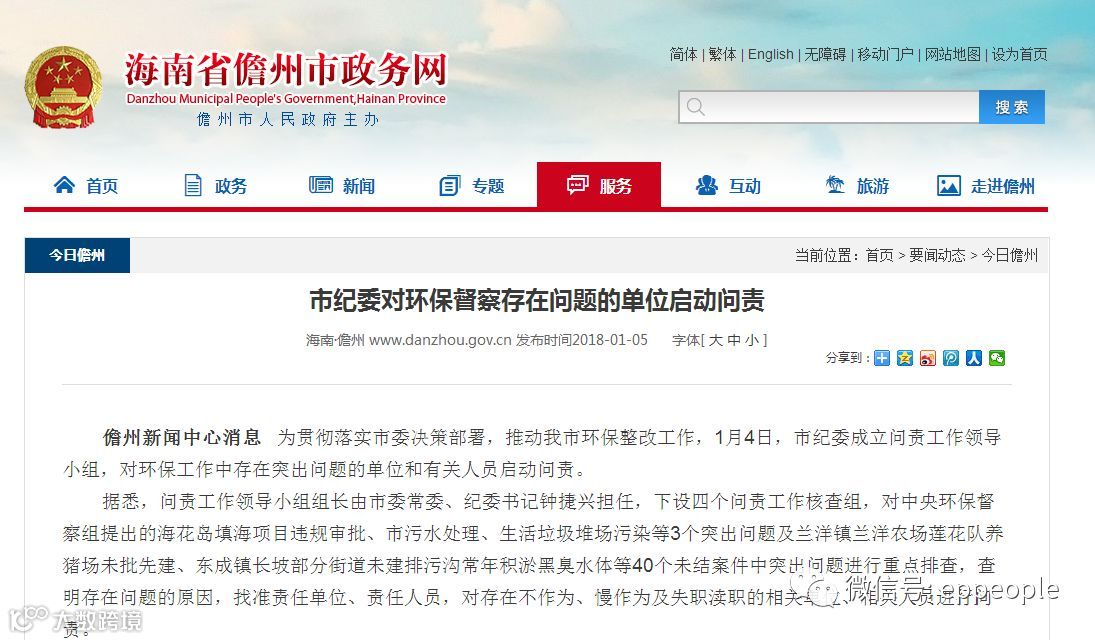 据悉,问责工作领导小组组长由市委常委、纪委书记钟捷兴担任,下设四个问责工作核查组,对中央环保督察组提出的海花岛填海项目违规审批、市污水处理、生活垃圾堆场污染等3个突出问题及兰洋镇兰洋农场莲花队养猪场未批先建、东成镇长坡部分街道未建排污沟常年积淤黑臭水体等40个未结案件中突出问题进行重点排查,查明存在问题的原因,找准责任单位、责任人员,对存在不作为、慢作为及失职渎职的相关单位、相关人员进行问责。