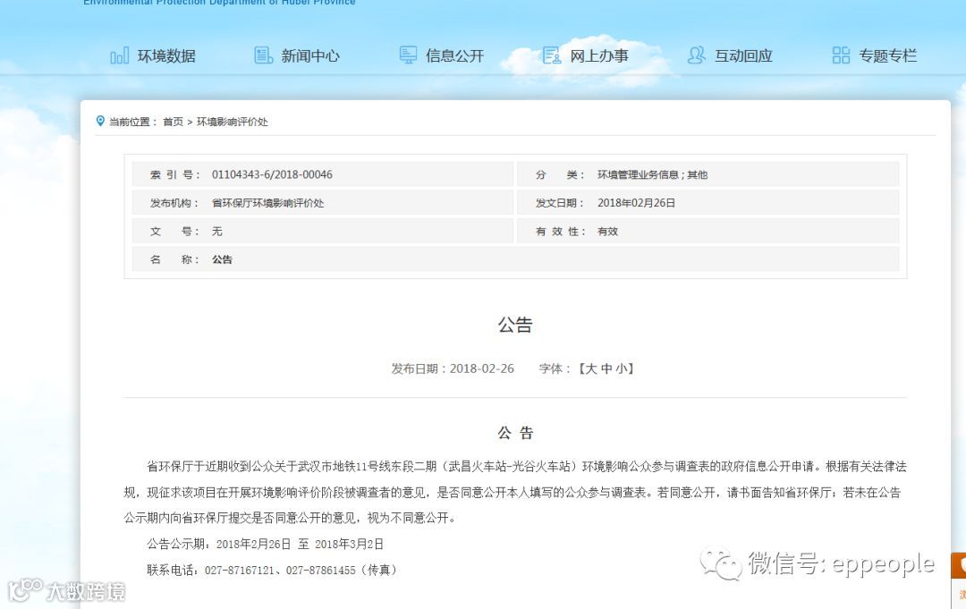 省环保厅于近期收到公众关于武汉市地铁11号线东段二期(武昌火车站-光谷火车站)环境影响公众参与调查表的政府信息公开申请。根据有关法律法规,现征求该项目在开展环境影响评价阶段被调查者的意见,是否同意公开本人填写的公众参与调查表。若同意公开,请书面告知省环保厅;若未在公告公示期内向省环保厅提交是否同意公开的意见,视为不同意公开。