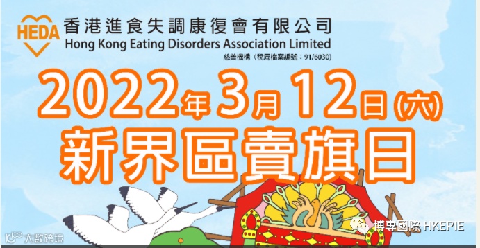 2022年3月12日(星期六)分别于新界区(沙田、元朗、荃湾、将军澳)卖旗, 善款将用作为进食失调症患者及其家属提供适切治疗及支援服务;向社会大众推行预防及教育工作,打击“瘦即是美”的风气,协助青少年建立正面的身体形象,使其自我价值不被社会单一及扭曲的身形文化所影响。
