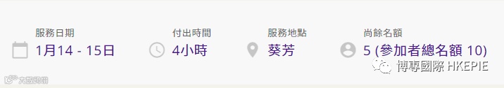 *** 如每星期可固定协助2节或以上将获优先安排 ***