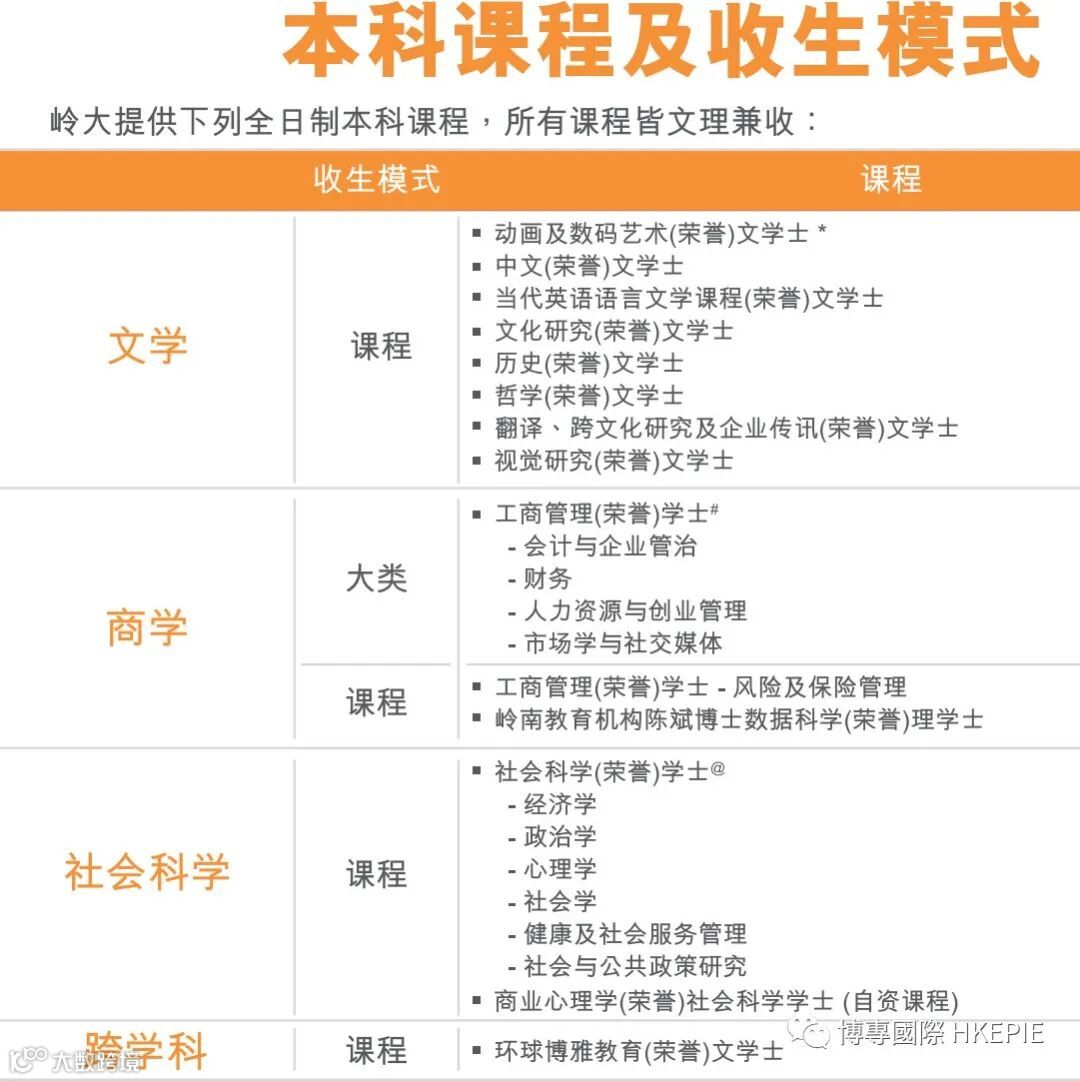岭大是亚洲领先的博雅大学,开办之课程涵盖人文学、工商管理及社会科学等领域,提供多种本科课程、哲学硕士╱博士学位课程及修课式高级学位课程。