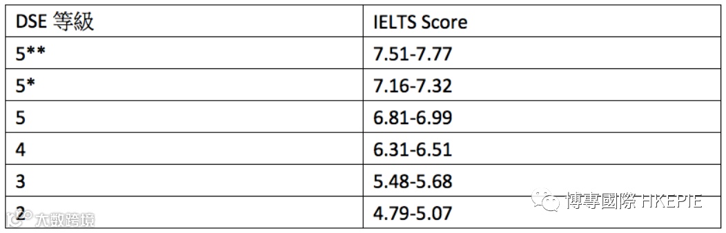 但需要注意的是,DSE的英文科,是不少学生为之头疼的学科。我这边列出了一个DSE英文科和雅思考试分数参考对照表。对于一直在内地读书的港宝,英文普遍都是稍微薄弱的学科,所以家长们也要权衡一下哦。准备考DSE的学生在英语科上要多花心思哦!