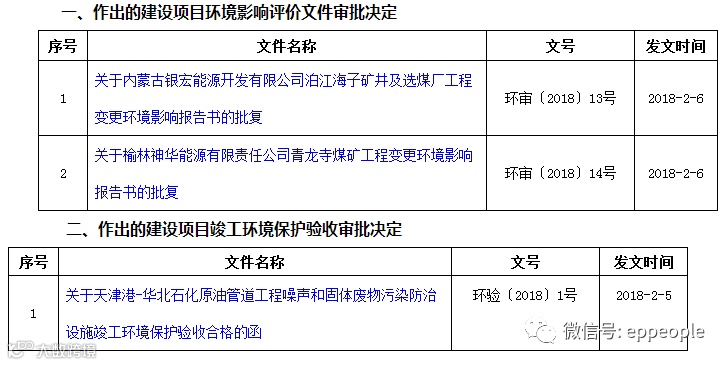环境保护部关于2018年2月1日—2018年2月14日作出的建设项目环境影响评价文件审批决定和建设项目竣工环境保护验收审批决定的公告