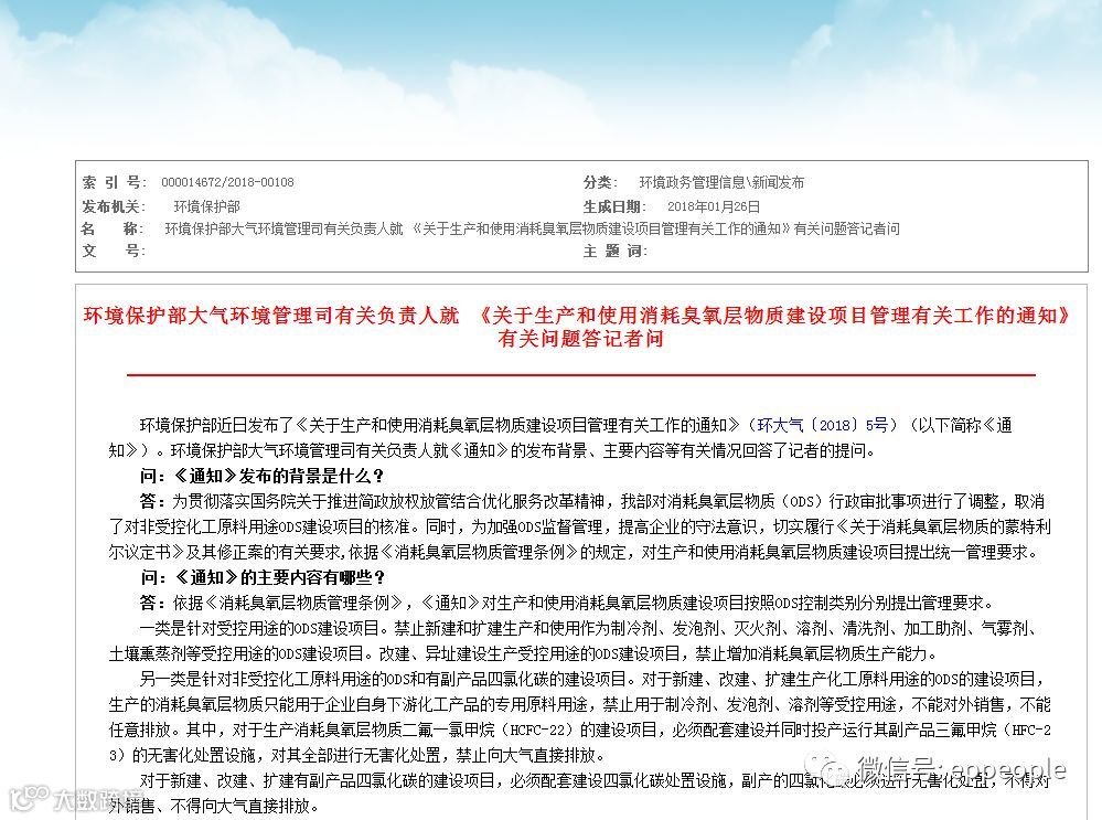环境保护部近日发布了《关于生产和使用消耗臭氧层物质建设项目管理有关工作的通知》(环大气〔2018〕5号)(以下简称《通知》)。环境保护部大气环境管理司有关负责人就《通知》的发布背景、主要内容等有关情况回答了记者的提问。