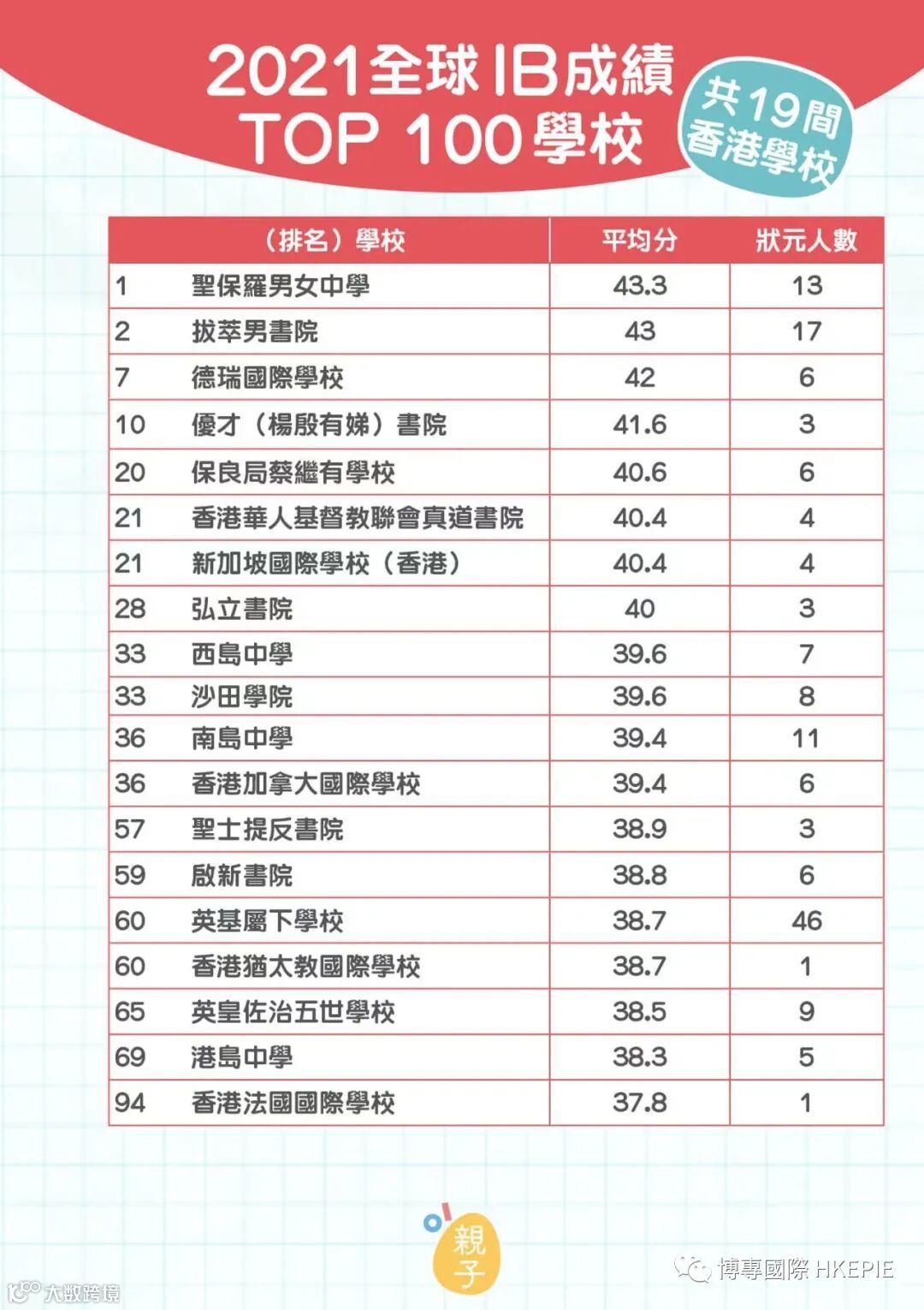 位于香港的拔萃男书院一直是不少家长中心目中的「神校」,区老师按照2020/21学年的IB全球学校平均分排名,整理出100间成绩最好的学校,其中19间属香港的学校,拔萃男书院更全球排名第2位,因此深受家长欢迎不是没有原因。