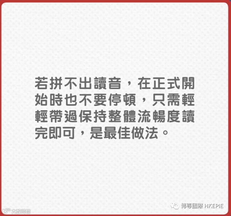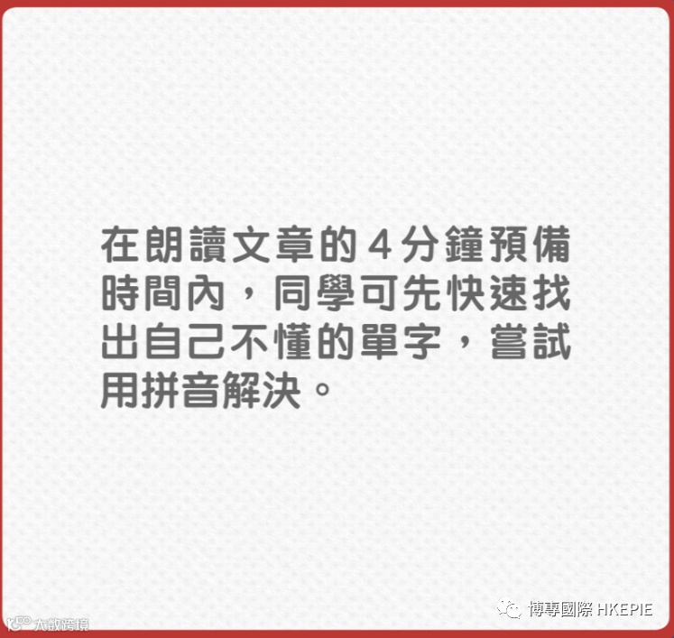 中、英文朗读主要是看同学的发音、语调、情感、停顿位以及流畅度去评分。在预备的4分钟内,同学可先快速找出自己不懂的英文单字,尝试用拼音解决,若拼不出读音,在正式开始时也不要停顿,只需轻轻带过保持整体流畅度读完即可,是最佳做法。