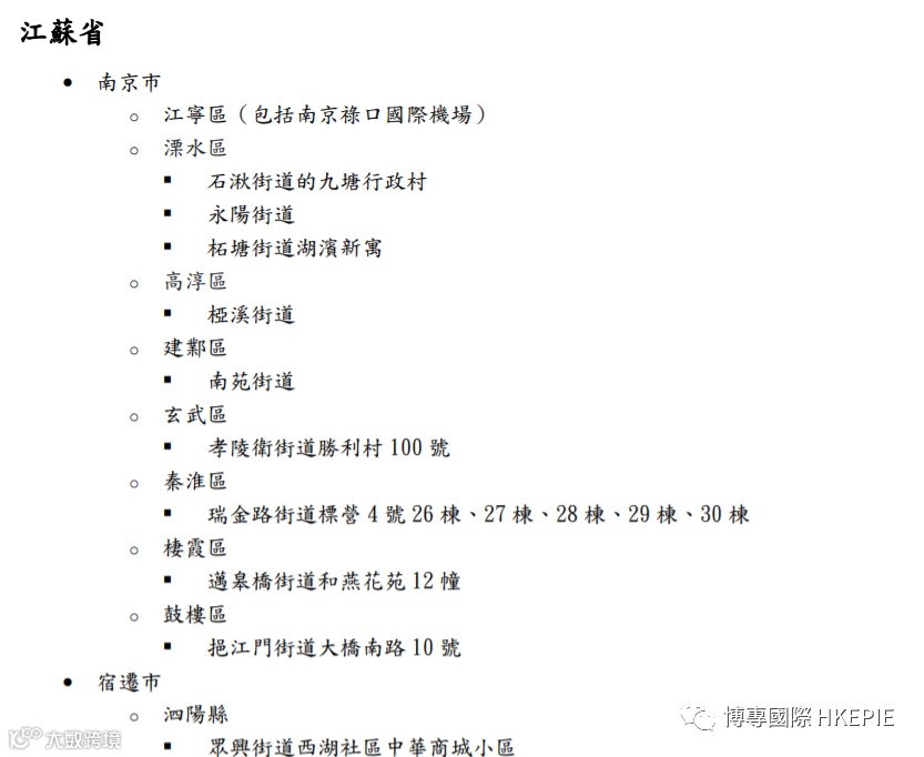 港府会定期更新风险地区名单,目前以下地区是高风险地区名单。