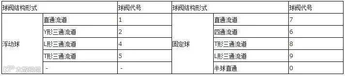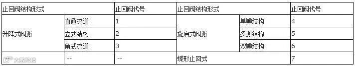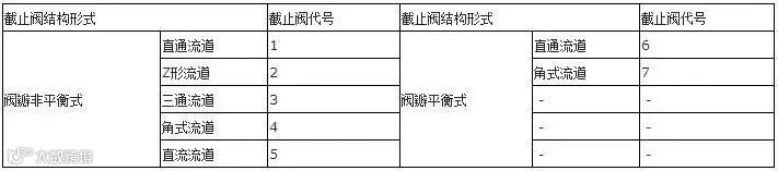 ⑤截止阀、节流阀和柱塞阀结构形式代号表: