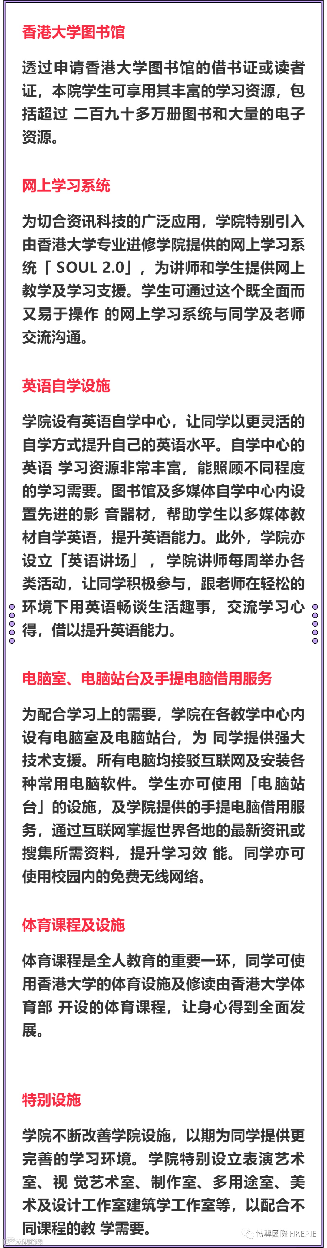 香港大学专业进修学院是香港大学管理下的自资教学部门。当中香港大学附属学院以及保良局何鸿燊社区书院为主要提供副学士课程以及高级文凭课程的两个书院部门。今天区老师分别为各位小伙伴介绍一下两个书院所提供的课程、书院简介以及截止报名日期。