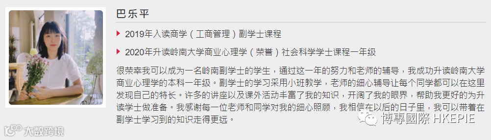 不少内地学生只读了一年的副学位便能顺利衔接本科二年级。事实证明,只要你够努力,凡事皆有可能。