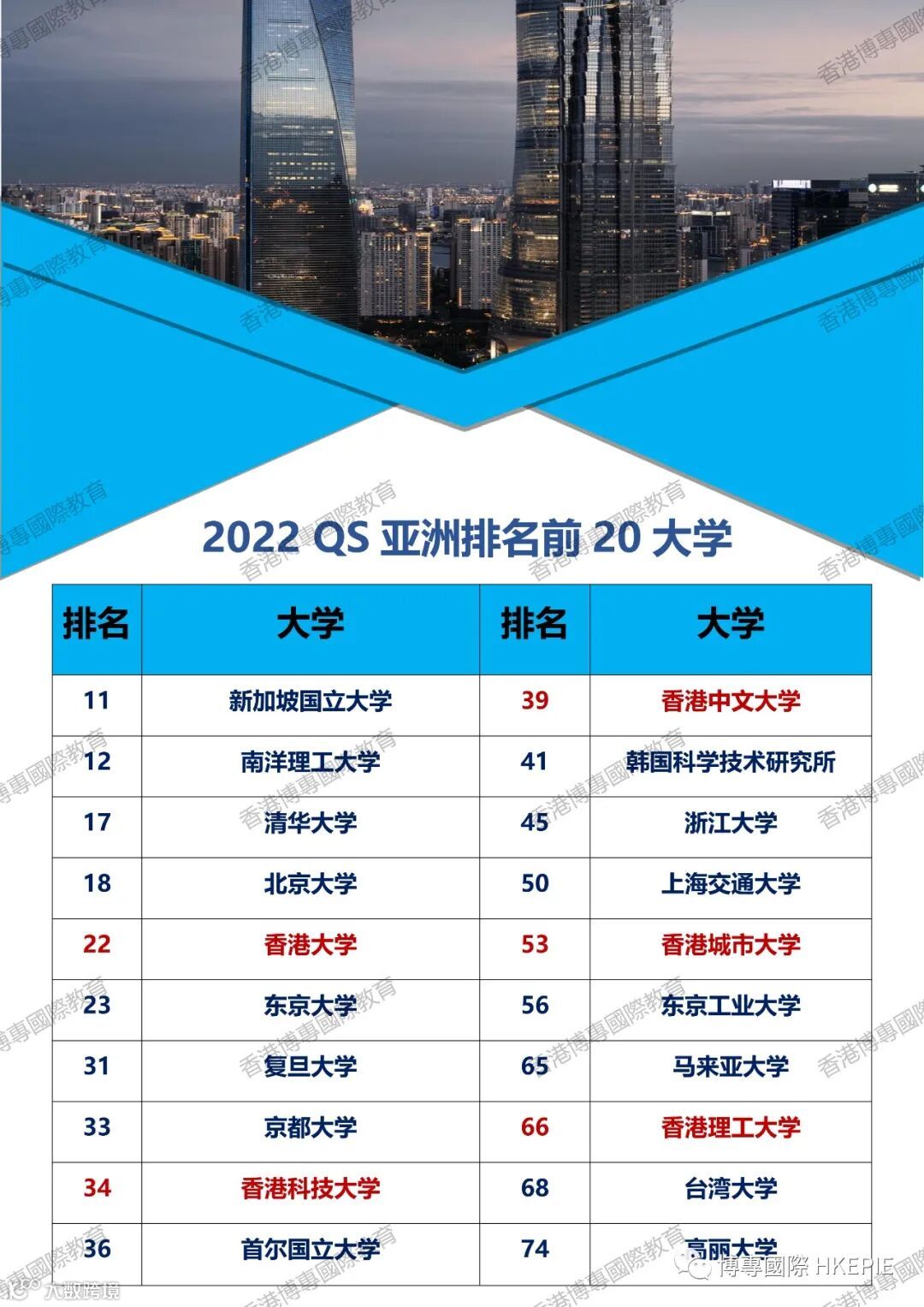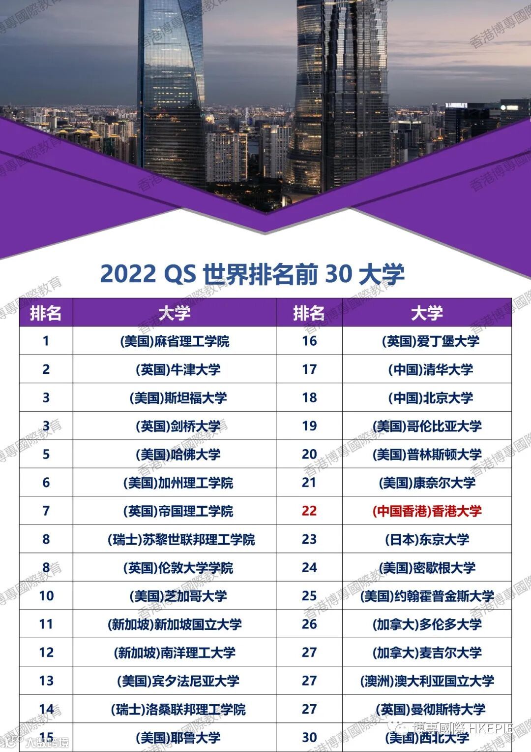 而香港高校方面,2022排名与2021年相若。香港大学,香港科技大学,香港中文大学,香港城市大学以及香港理工大学依然排在全球前70名。
