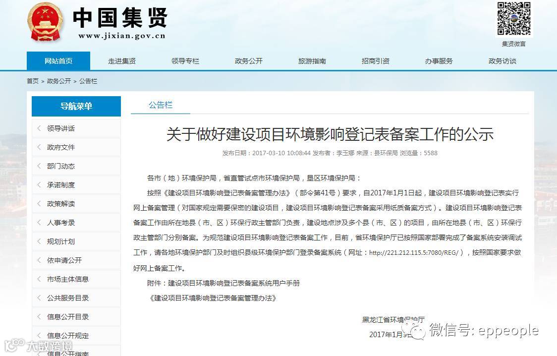 县级环境保护主管部门应当向社会公告网上备案系统地址链接信息。