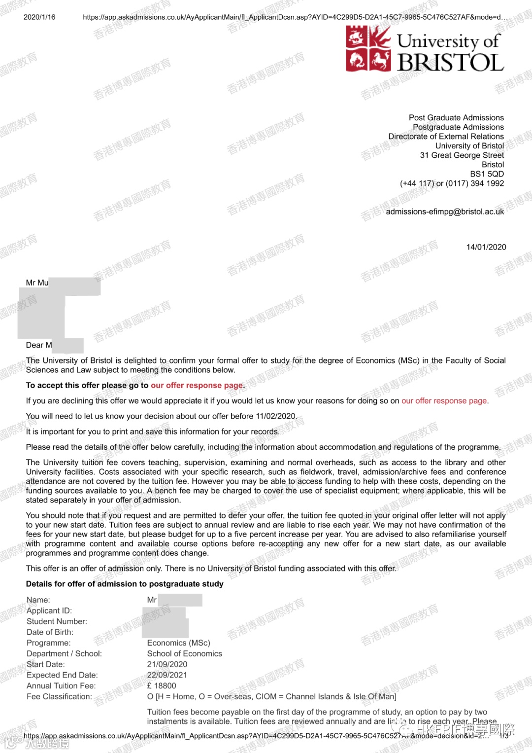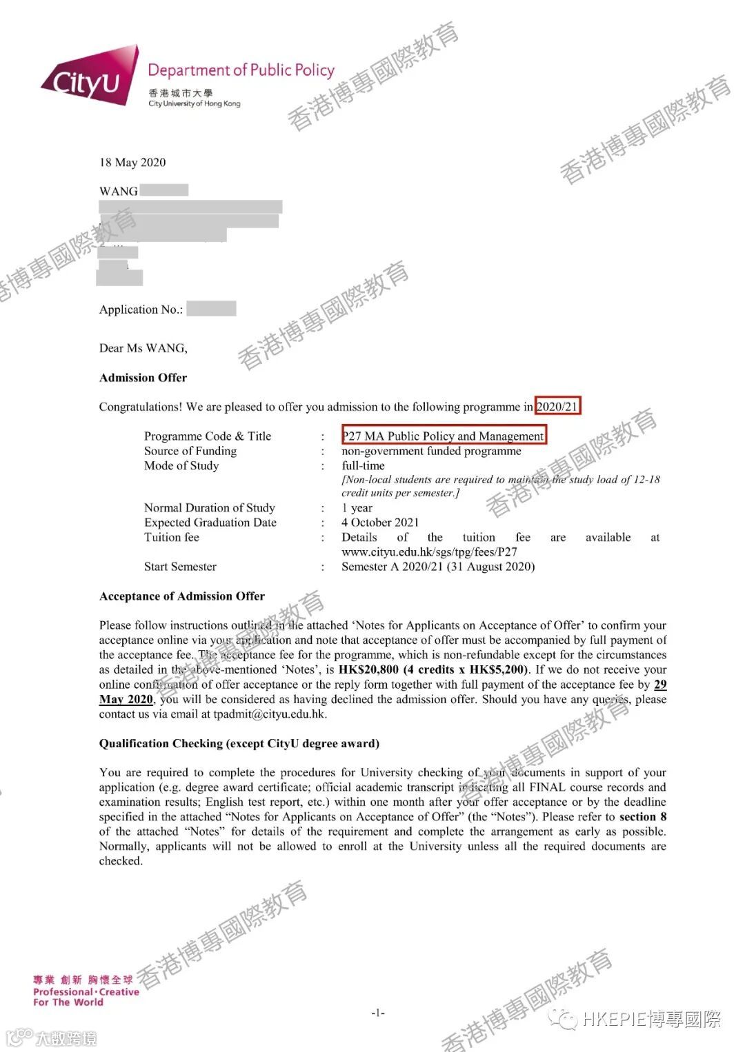 香港博专国际教育学生于2020-2021年度共斩获150+研究生录取通知书,