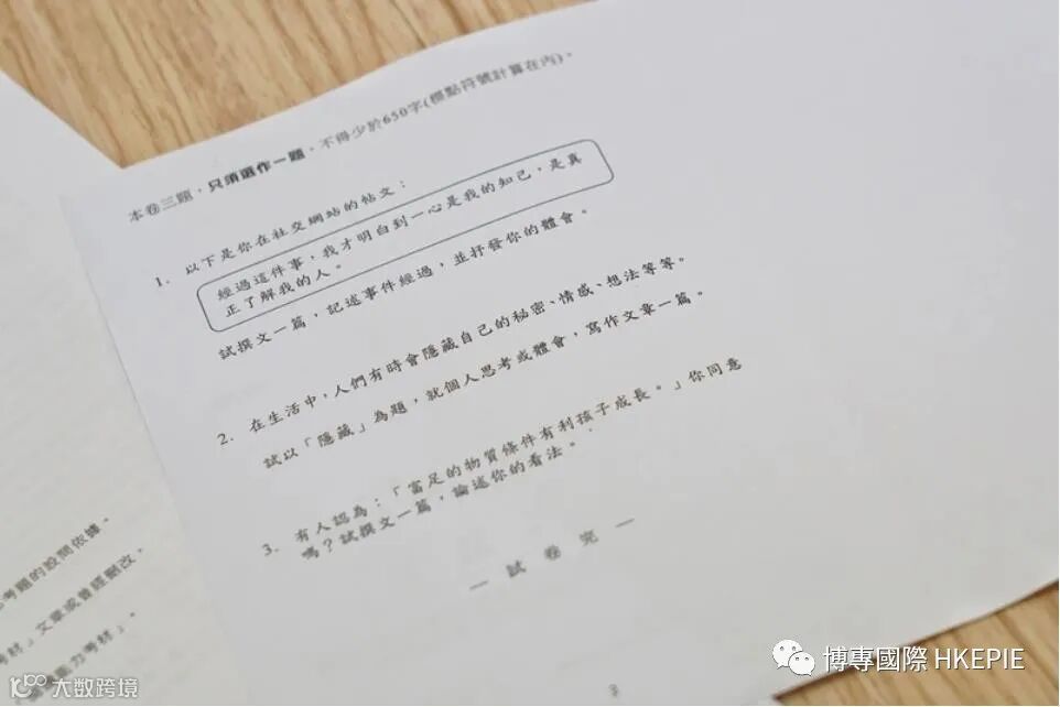 写作的三道题目浅白易明,同学“一定懂做”,但若同学在首两题以“流水账”的方式叙述事件,未有以文章立意表达正面的品德价值观,则相信只会及格而不会高分;第三题则须注意扣题,举个例子,比如有位同学写“逆境造人才”但未有与“物质条件”紧扣,则可能离题。