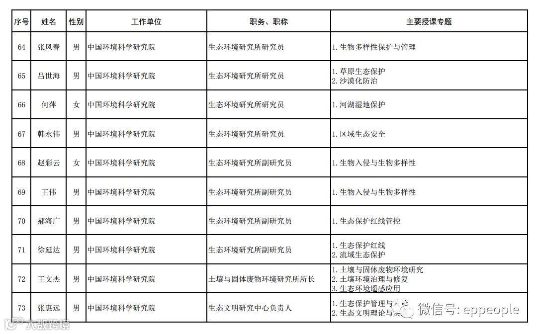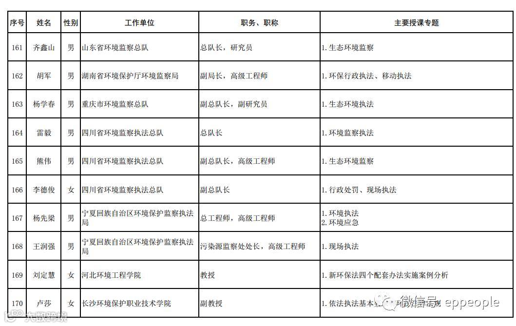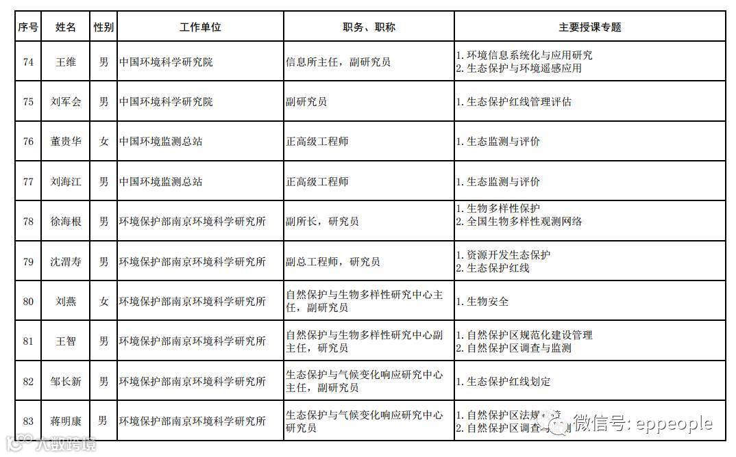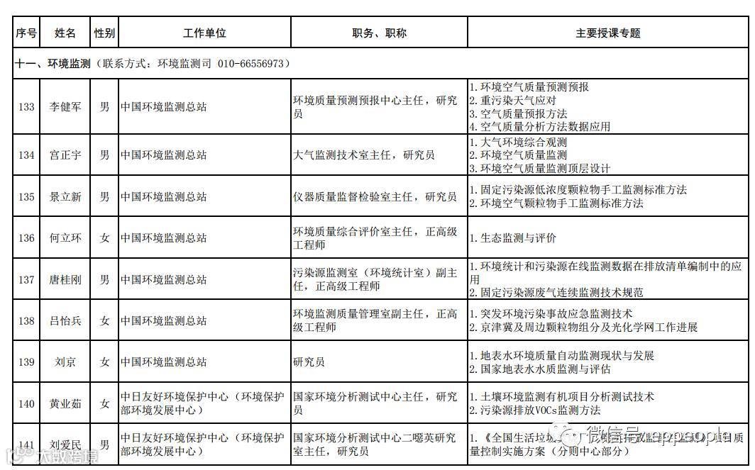 国家环境保护培训师资来自环境保护部派出机构、直属单位,部分地区环保部门及所属单位,有关部委及所属单位,有关高校、科研院所和企业等,都是环保工作各业务领域的专家,具有扎实的理论功底和丰富的实践经验,授课效果较好。