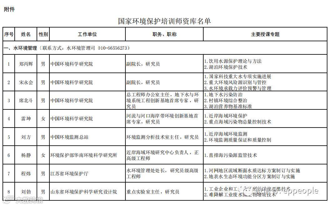 为贯彻落实《干部教育培训工作条例》,加强新形势下环保培训师资队伍建设,促进资源共享,提高培训质量,经组织推荐和综合评议,环境保护部决定建立国家环境保护培训师资库,首批入库师资251名。现予以公布(见附件)。