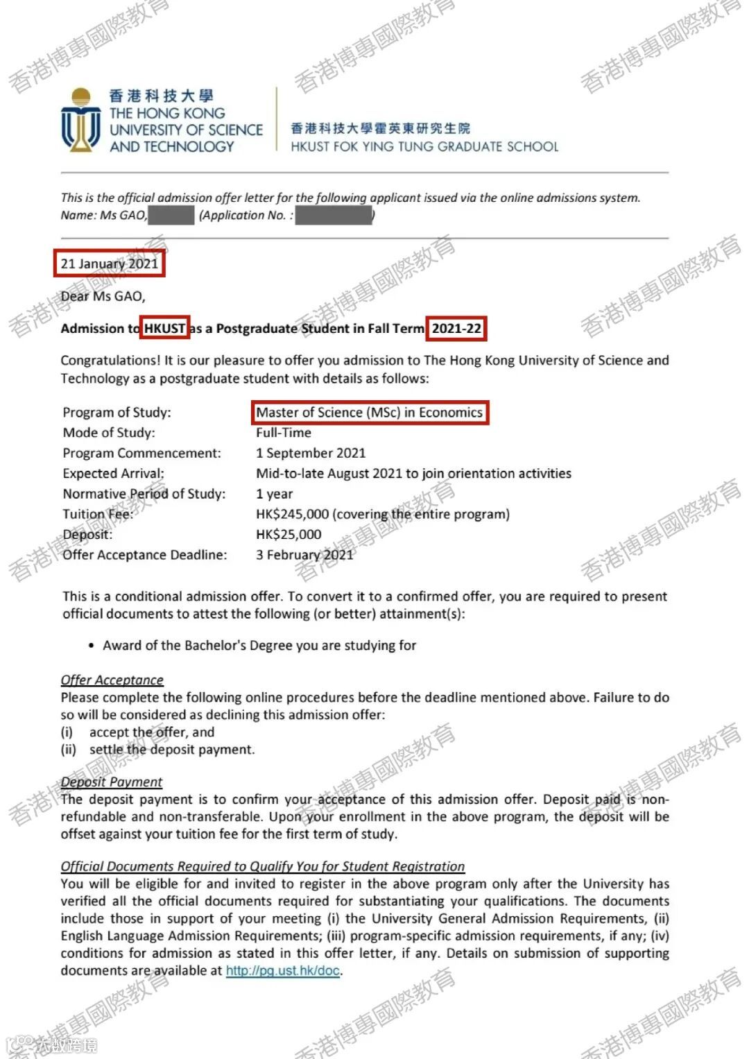 2. 高同学获得香港科技大学经济学硕士学位录取通知
