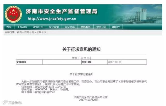 近日,济南市人民政府办公厅发布《关于加强餐饮场所燃气使用安全管理的意见(征求意见稿修改稿)》,规定使用天然气、液化石油气等燃气的餐饮服务经营单位(以下简称餐饮单位),是餐饮场所燃气使用安全的责任主体,应当保证本单位从业人员经安全培训合格后上岗作业。《意见》对餐饮场所燃气使用安全做了详细规定。