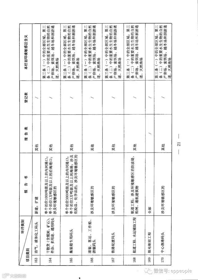 单个泊位1000吨级及以上的内河港口;单个泊位1万吨级及以上的沿海港口;涉及环境敏感区的 |