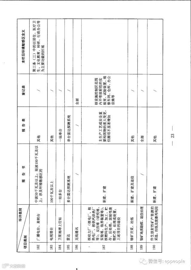 中波50千瓦及以上;短波100千瓦及以上;涉及环境敏感区的 |