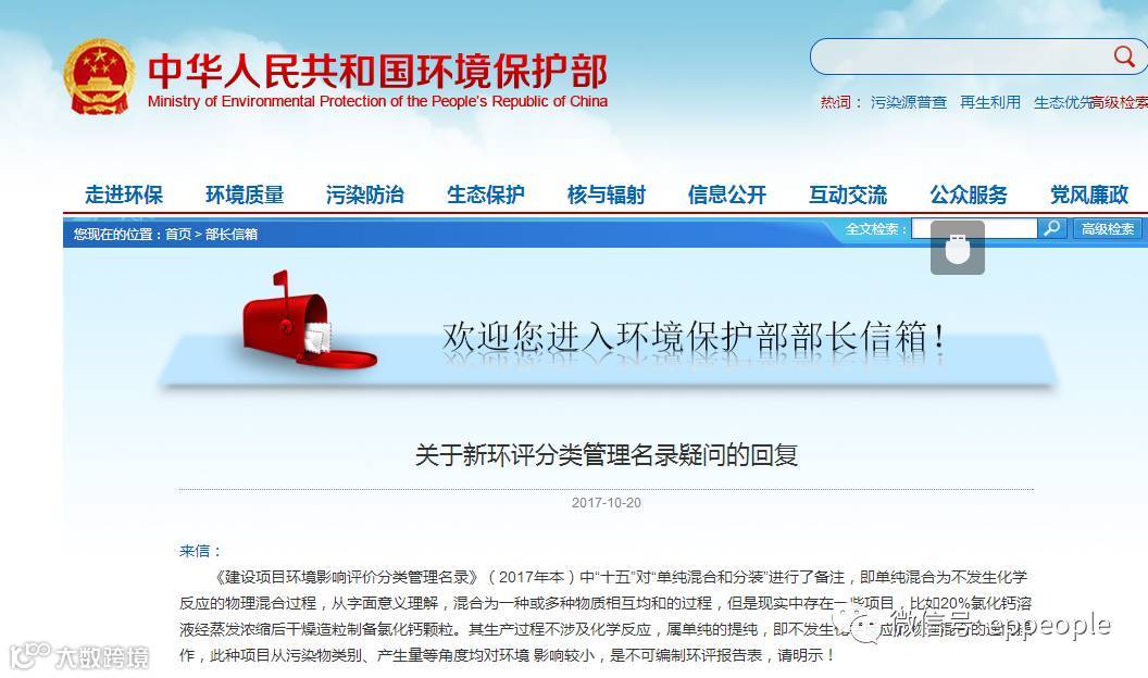 来信中所提“20%氯化钙溶液经蒸发浓缩后干燥造粒制备氯化钙颗粒,生产过程不涉及化学反应”的项目,应按照《建设项目环境影响评价分类管理名录》(环保部令第44号,以下简称《名录》)“十五、化学原料和化学制品制造业”中的“单纯混合或分装的”类建设项目,编制环境影响报告表。但若建设内容涉及《名录》其他条款及项目类别的,应综合考虑判定其环境影响评价类别。