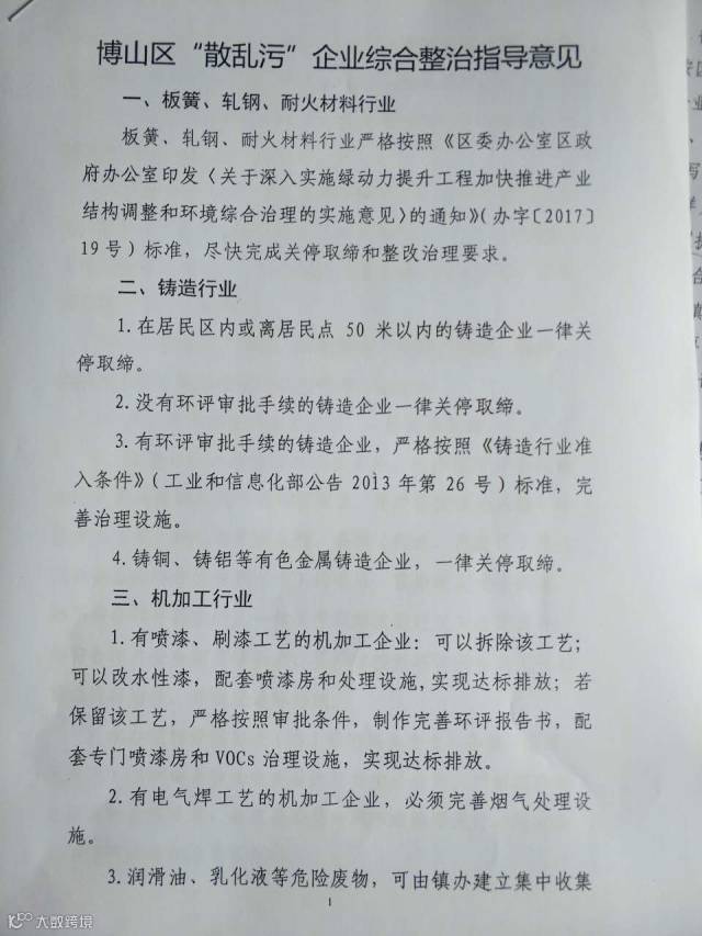 近期,山东淄博博山区下发博山区“散乱污”企业综合整治指导意见,涉及耐火材料、铸造、机加工、陶瓷、玻璃等行业