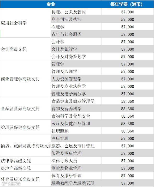 香港大学副学士的官网数据表明,